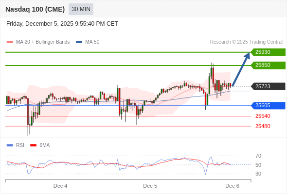 在 25605 之上,看涨,目标价位为 25850 ,然后为 25930 。