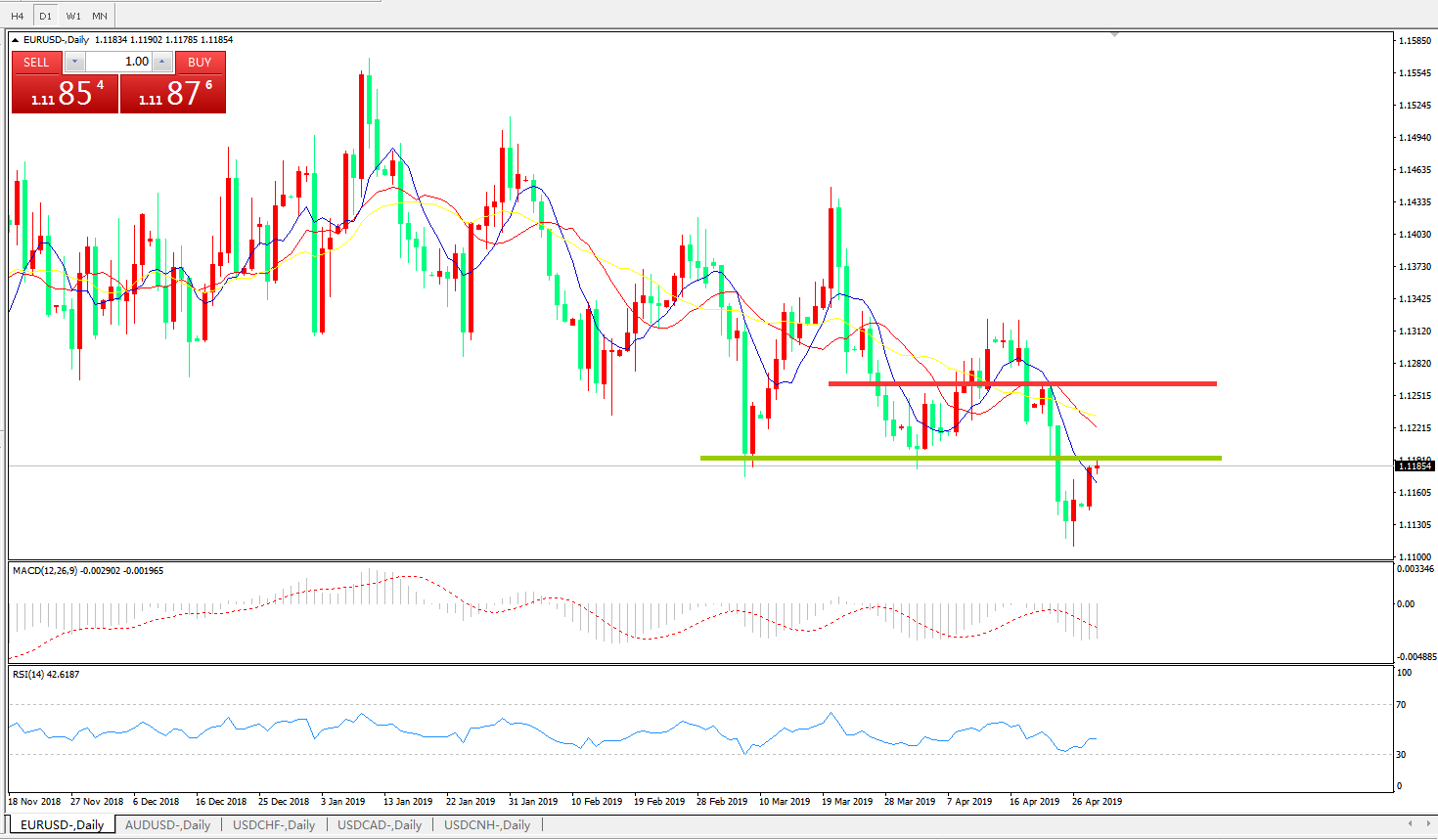交易策略:在1.1200之下,看跌,目标价位为 1.1100,然后为1 .1030