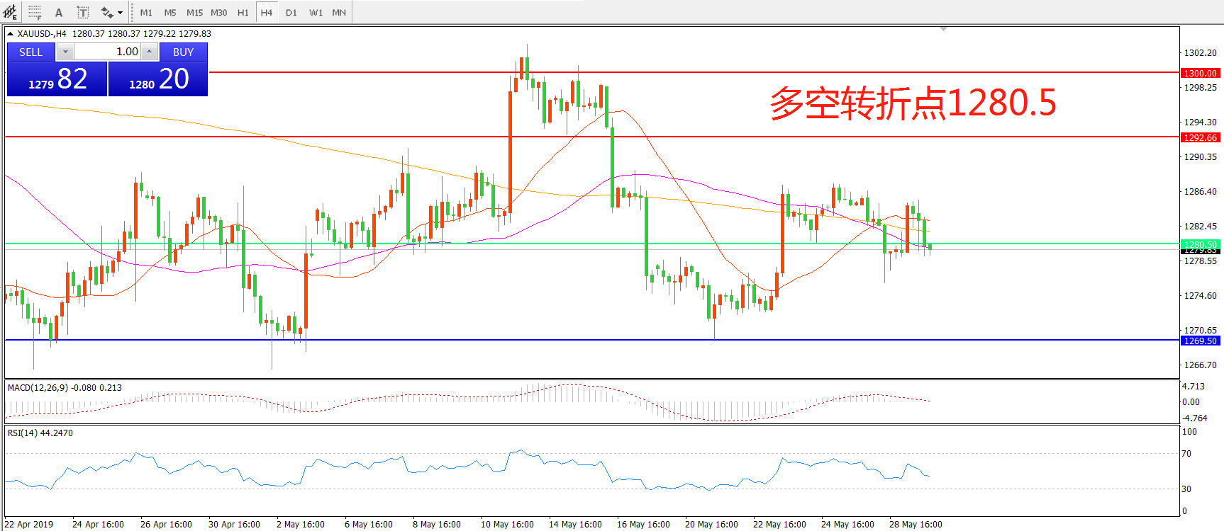 5月29日美元走强,美元指数升上98关口,刷新近四日高点。强势美元打压下,金价冲高回落,但全球避险情绪升温与欧元区担忧情绪依然为金价提供支持,如果国际经贸紧张关系延续,金价仍有机会冲击1300关口。