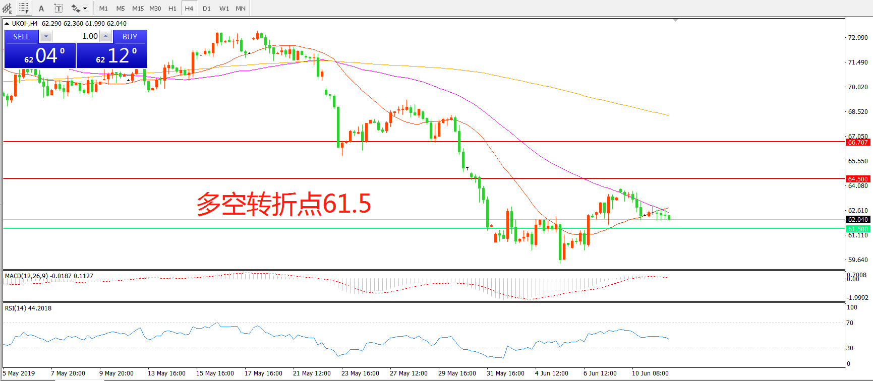 特朗普又发布推文表示,签署了墨西哥移民协议的另一个重要部分,将在不久后公布,并需要墨西哥立法部门的批准。如果墨西哥立法不能通过,关税可能重来。俄罗斯总统普京周四(6月6日)发表讲话称,在油价问题上和石油输出国组织(OPEC)观点上存在一定程度的分歧,但会在未来数周内与OPEC就产量问题进行讨论。减产协议的不确定性让油价走势颇为挣扎,布伦特原油周二(6月11日)延续跌势,收报62.04美元/桶。 美国石油学会(API)公布报告称,截至6月7日当周,美国原油库存增加485.2万桶,利空油价,重点关注晚间EIA库存数据表现。