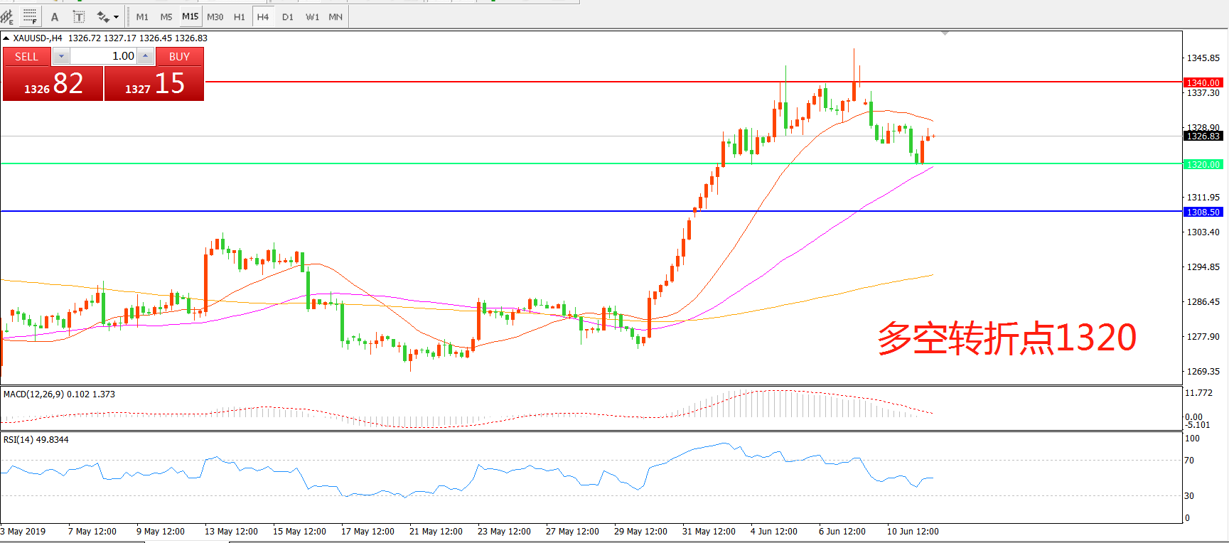 备选策略:在1320.00之下看跌,目标1308.00 1300.00