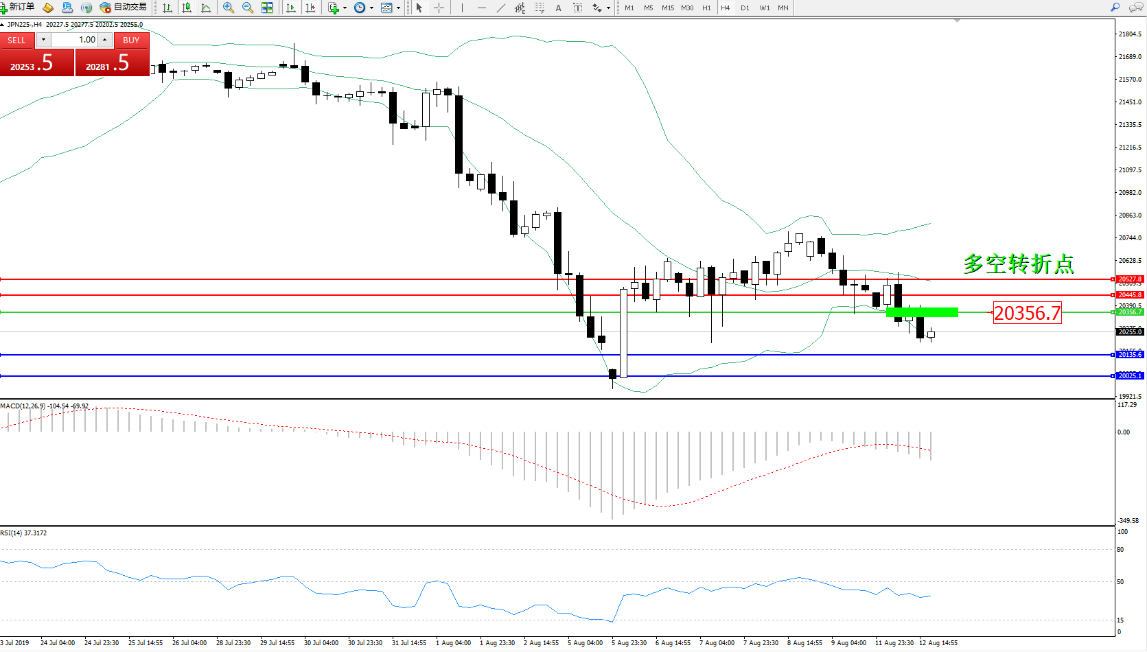 日经指数JPN225——4小时K线图: