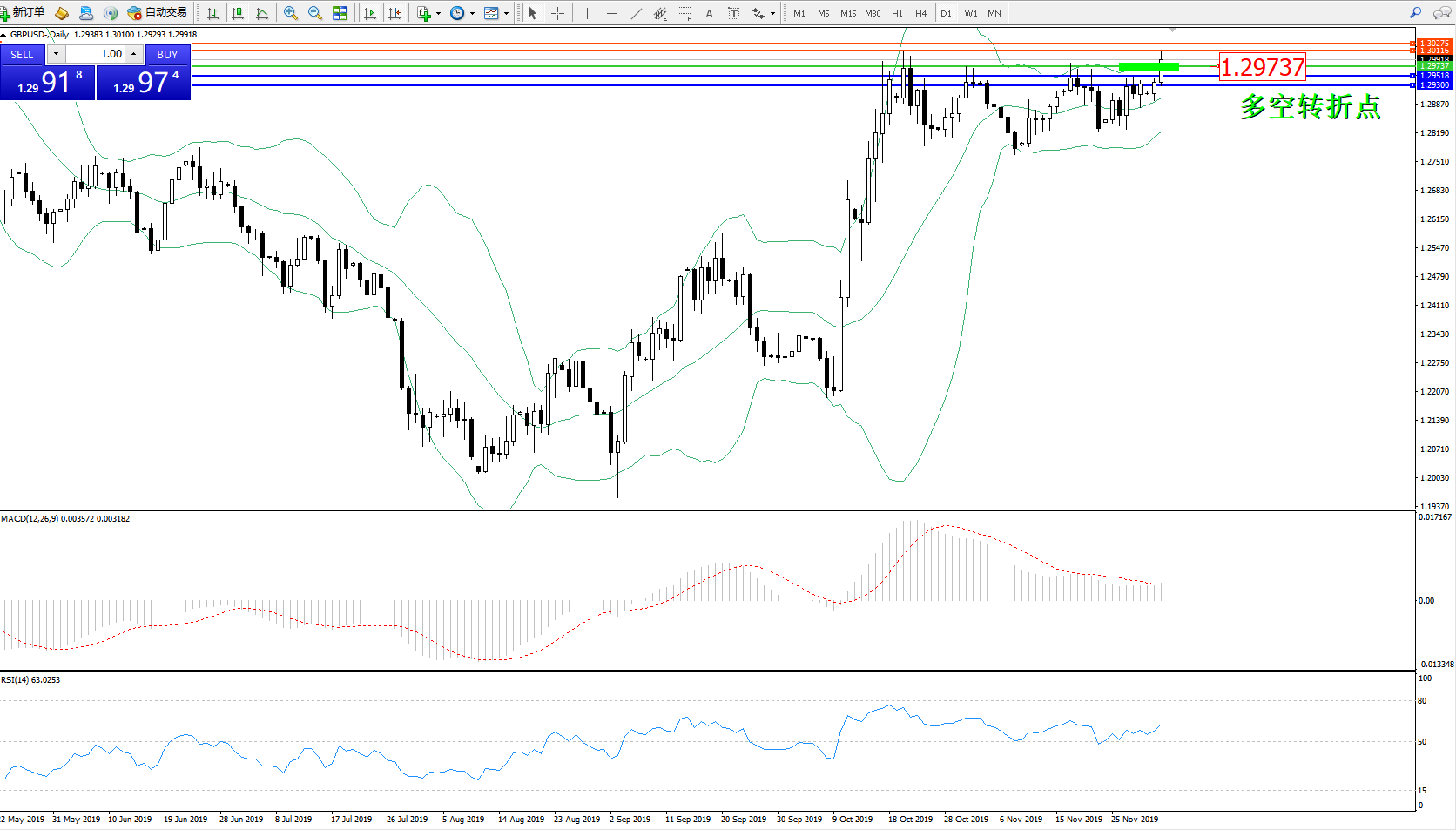 交易策略:1.29737上方看涨,目标1.30116、1.30275
