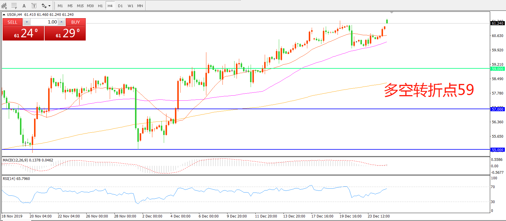 交易策略:在59.00 之上看涨,目标62.00 65.00