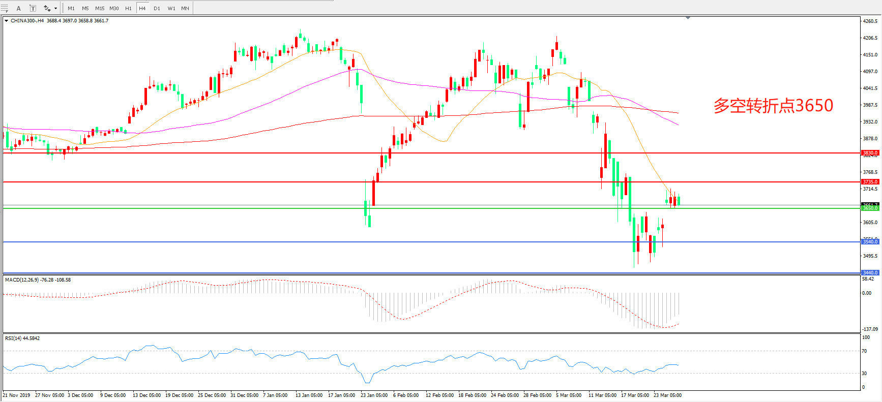 4小时图看,沪深300维持窄幅震荡,整体波幅不大,均线系统逐渐走平,MACD绿柱缩短,RSI指标走平,日内震荡上行概率较大。