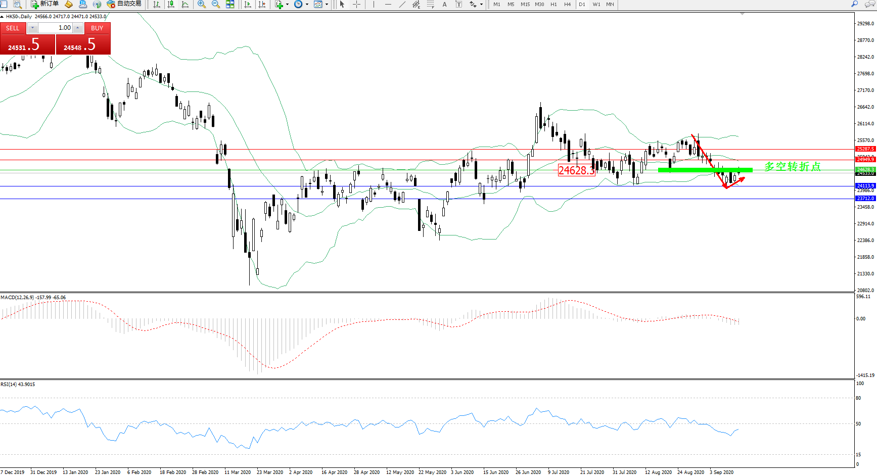 技术点评:长时间维持在布林带指标通道内持续宽幅震荡平移,高位空头动力弱势震荡回撤至布林带指标下轨附近持续徘徊中,空头动力处于下轨内侧徘徊,布林带指标呈张口走势持续中,关注中下轨区间节点,MACD指标弱势徘徊于0轴线后终究破位进入空头区域徘徊,RSI指标处于50均衡线下方弱势震荡向下移动后有回升迹象;