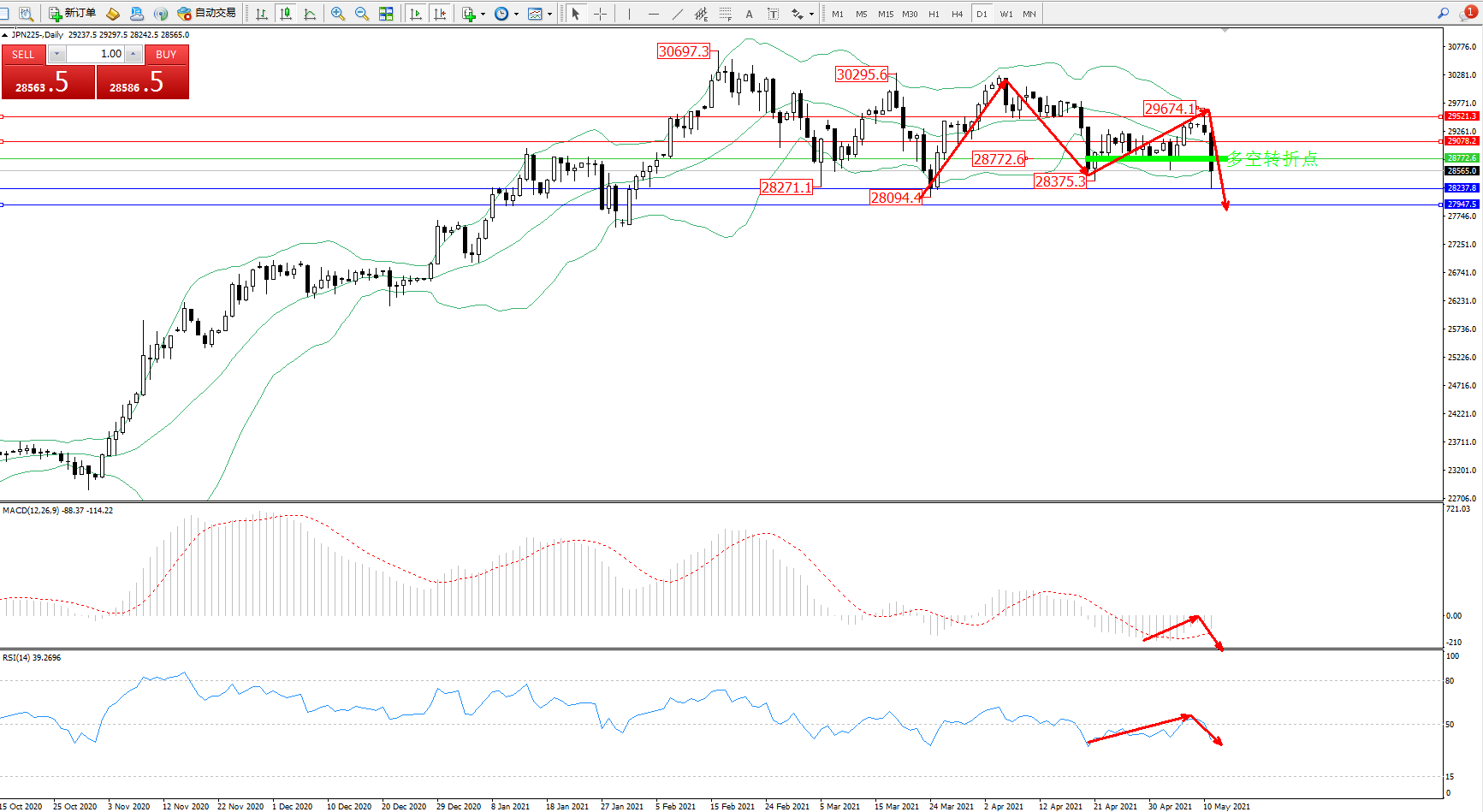 日经225指数5月11日(周二)收盘下跌897.84点,跌幅3.04%,报28620.50点。市场消息:日本制药公司武田药品工业在日本供应莫德纳新冠疫苗。预计日本可能在5月批准莫德纳疫苗。日本正在讨论增加额外的5000万剂莫德纳疫苗。日本福岛县磐城市的一家化学工厂发生火灾,事故地点为磐城市常盘岩冈町的堺化学工业的汤本工厂。据悉,至少有4名男性受伤,当地消防正在展开灭火工作。事故所涉工厂主要生产一些原料化学制品用于涂料、化妆品等。当地消防部门已经对工厂进行灭火工作,当地警察等正在详细调查火灾的原因。
