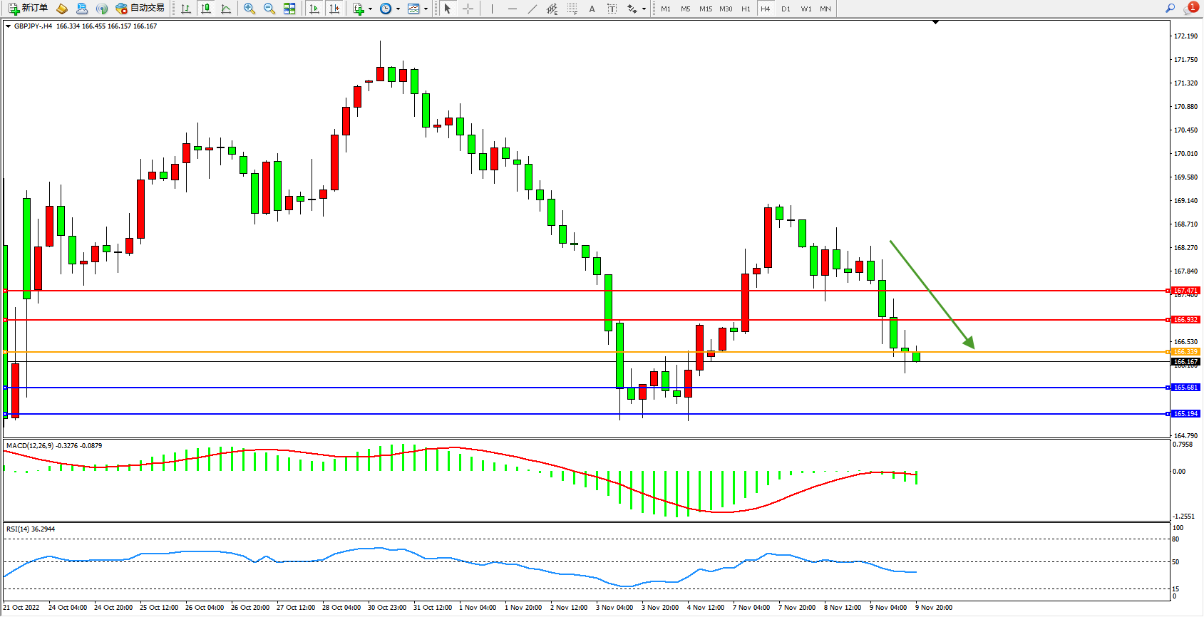 交易策略:166.339下方看跌,目标165.681、165.194