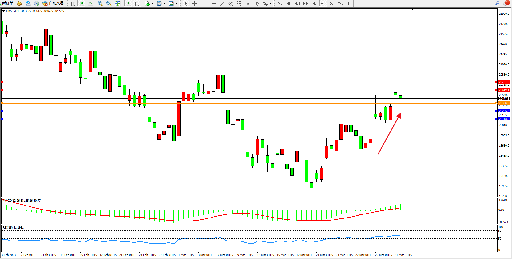 恒指HK50 4小时图