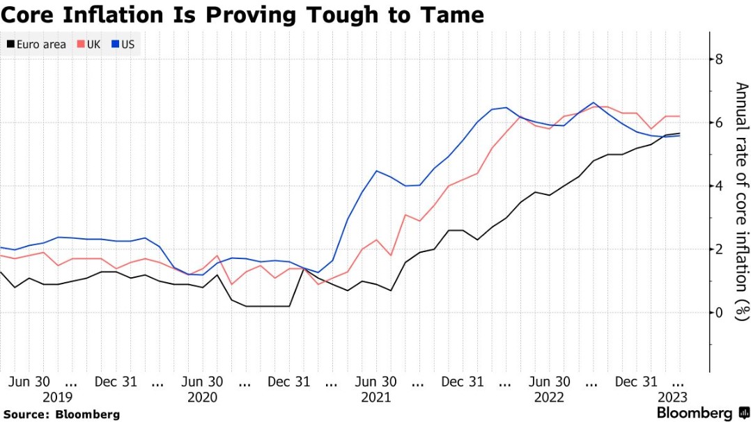 放眼全球,欧美的总体通胀水平已经有所减弱,但英国的通胀仍然保持两位数的增长,欧元区核心通胀也创下历史新高。