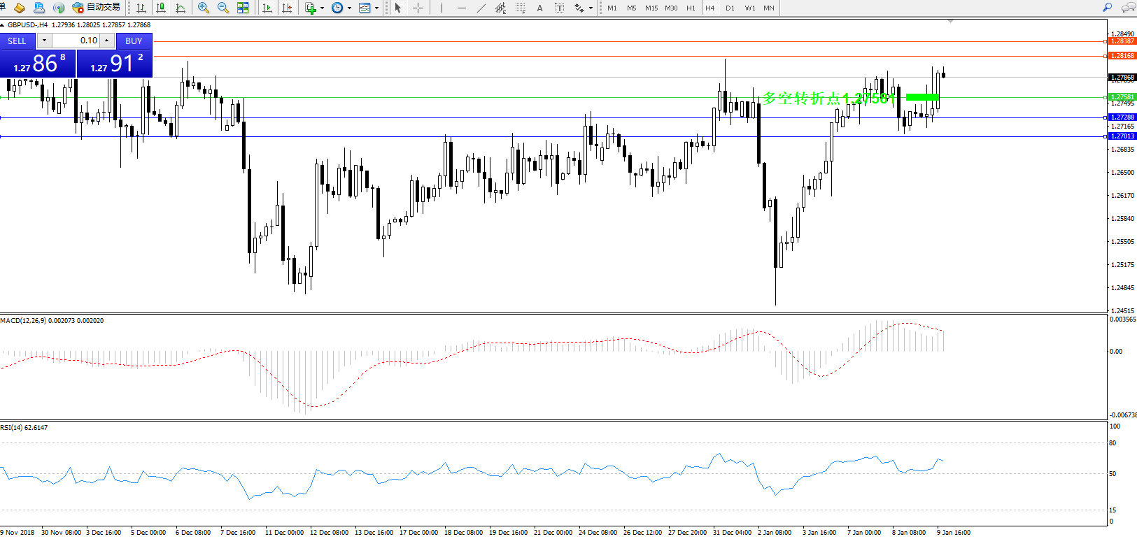 交易策略:1.27581上方看涨,目标1.28168、1.28387